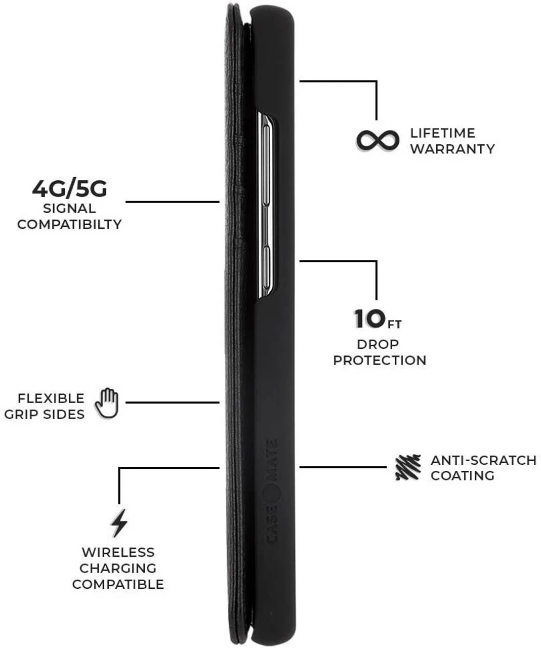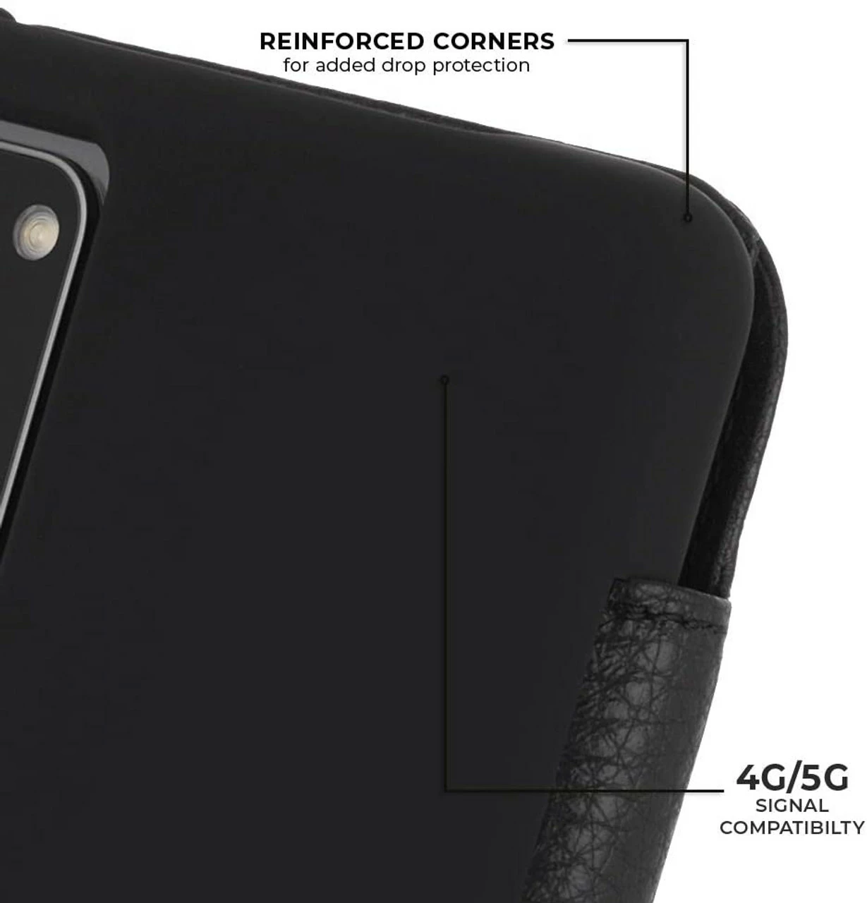 A wallet and a phone case, the total package! The exterior is crafted from premium pebbled genuine leather with a built-in landscape stand feature and three pockets to hold cards or cash. Grab your Wallet Folio and go!
