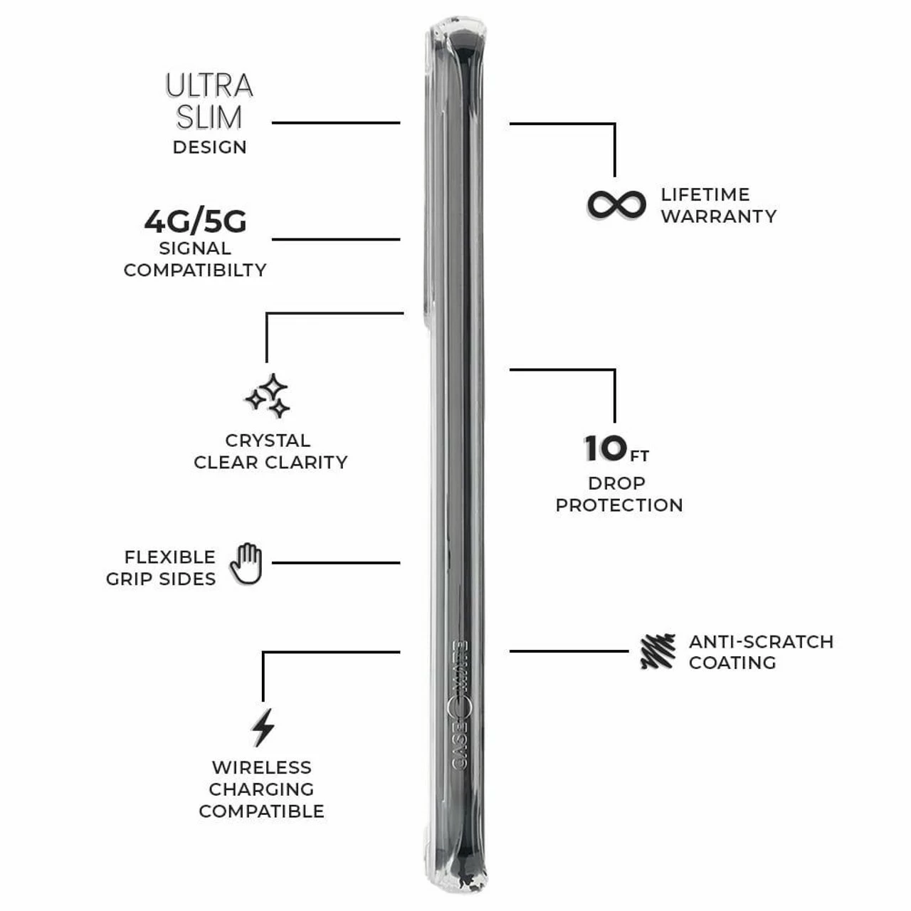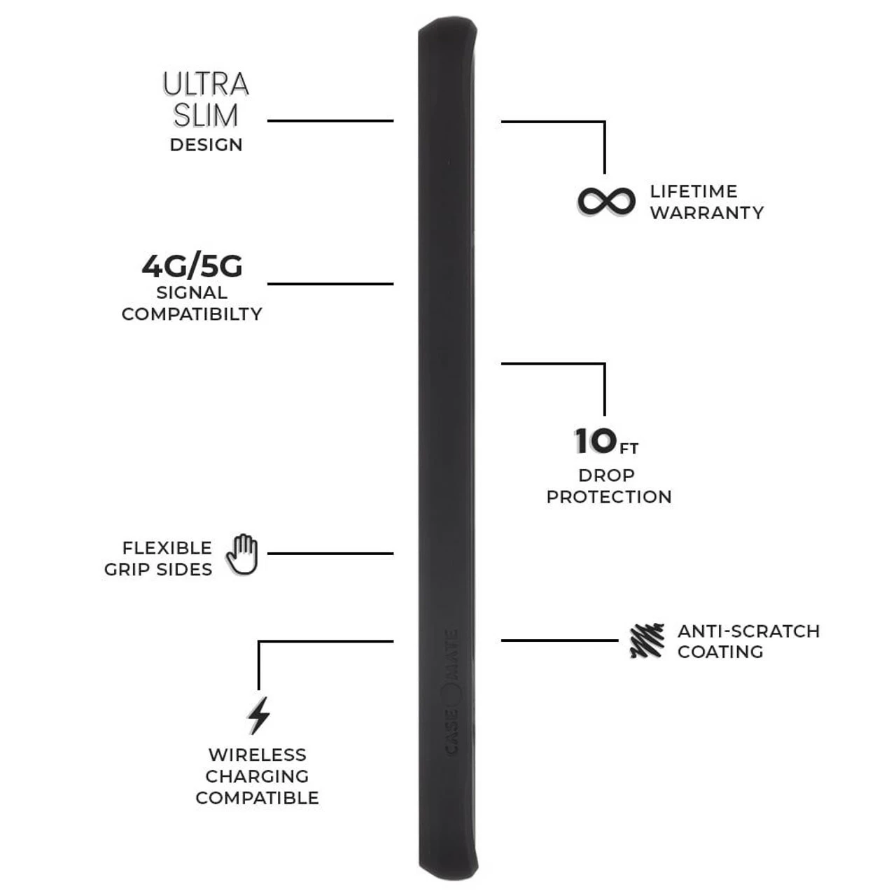 The minimalist design of this case gives you everything you need, from a slim profile to its incredible drop protection. The construction features cushioned corners, soft flexible sides, and non-toxic BPA-free plastic.