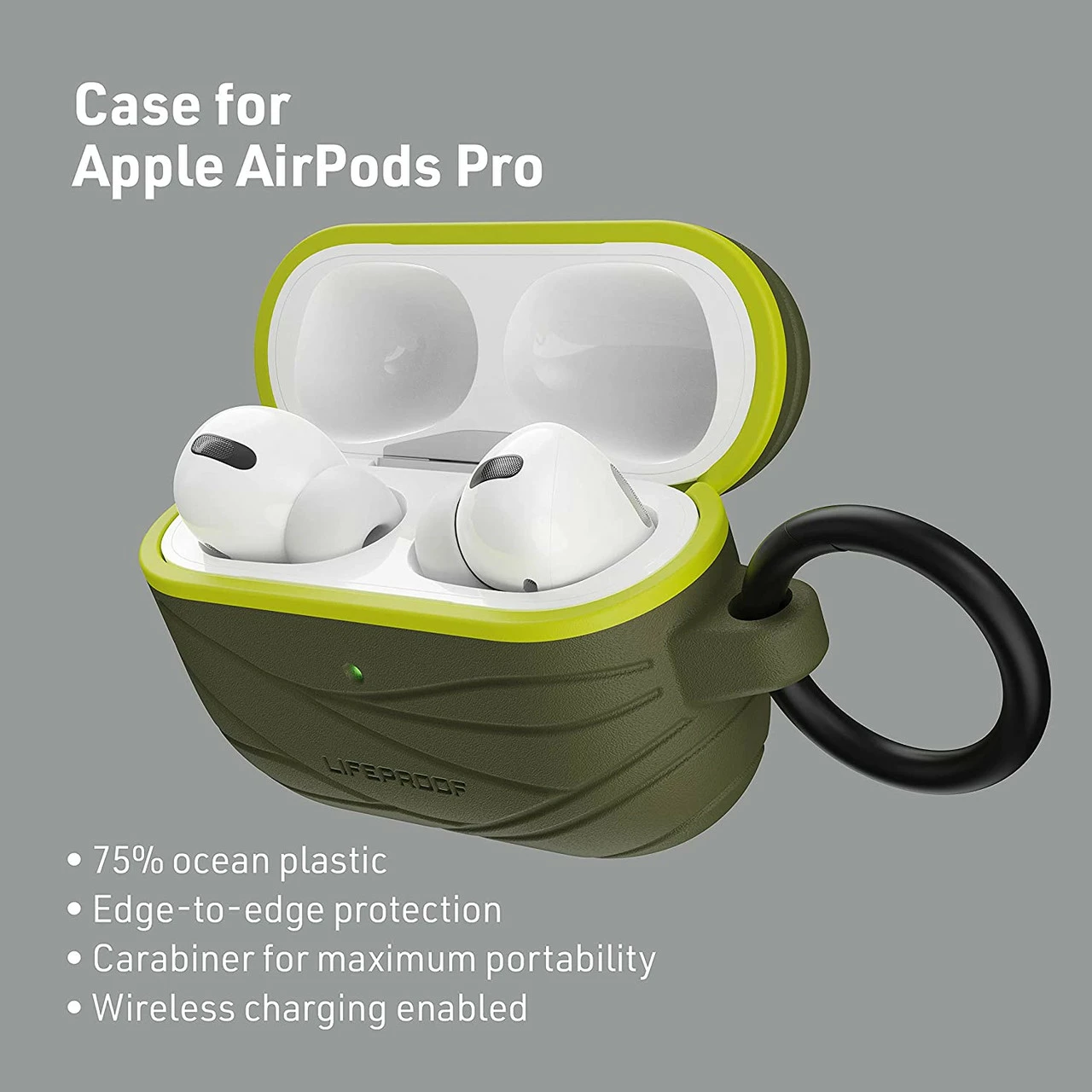 Keep your charging case safe from harm with the LifeProof Case for Apple AirPods Pro. Built from 75% ocean-based recycled plastic, it delivers edge-to-edge protection while helping to heal our seas. Easily attach it anywhere with a quick-clip carabiner, and park it on a Qi-wireless charger at the end of the day for cordless refueling