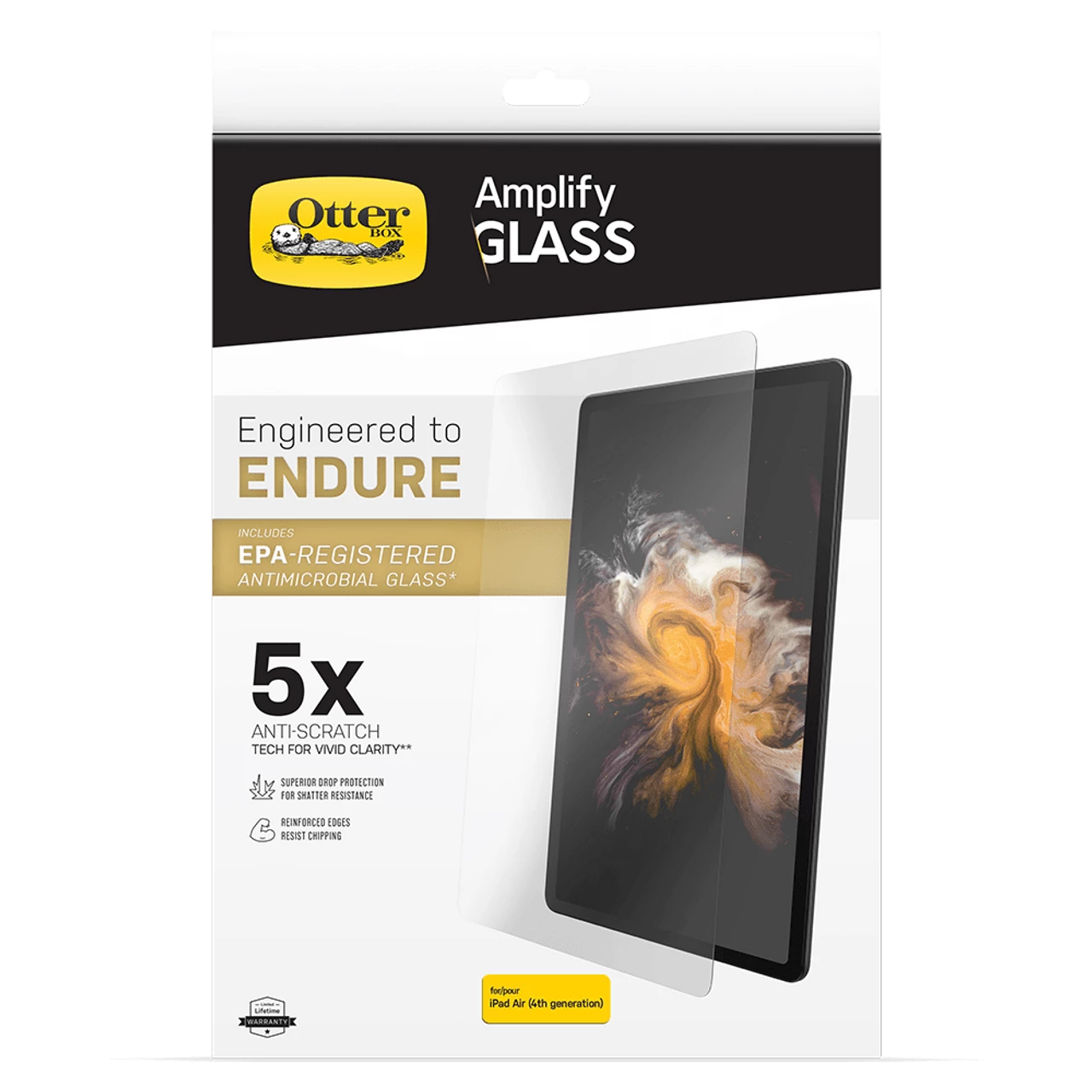 Amplify glass with antimicrobial technology from OtterBox is co-developed with corning for superior scratch resistance and continuous antimicrobial technology. Includes the first EPA-registered antimicrobial glass that defends your tablet screen against damage and unwanted microbes.