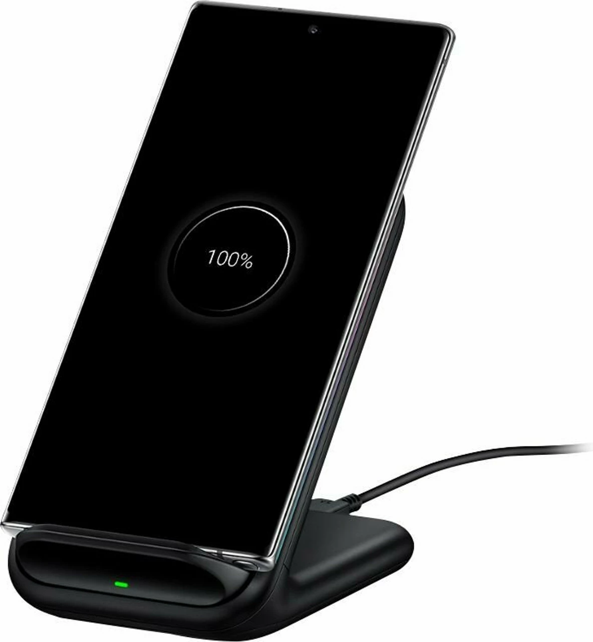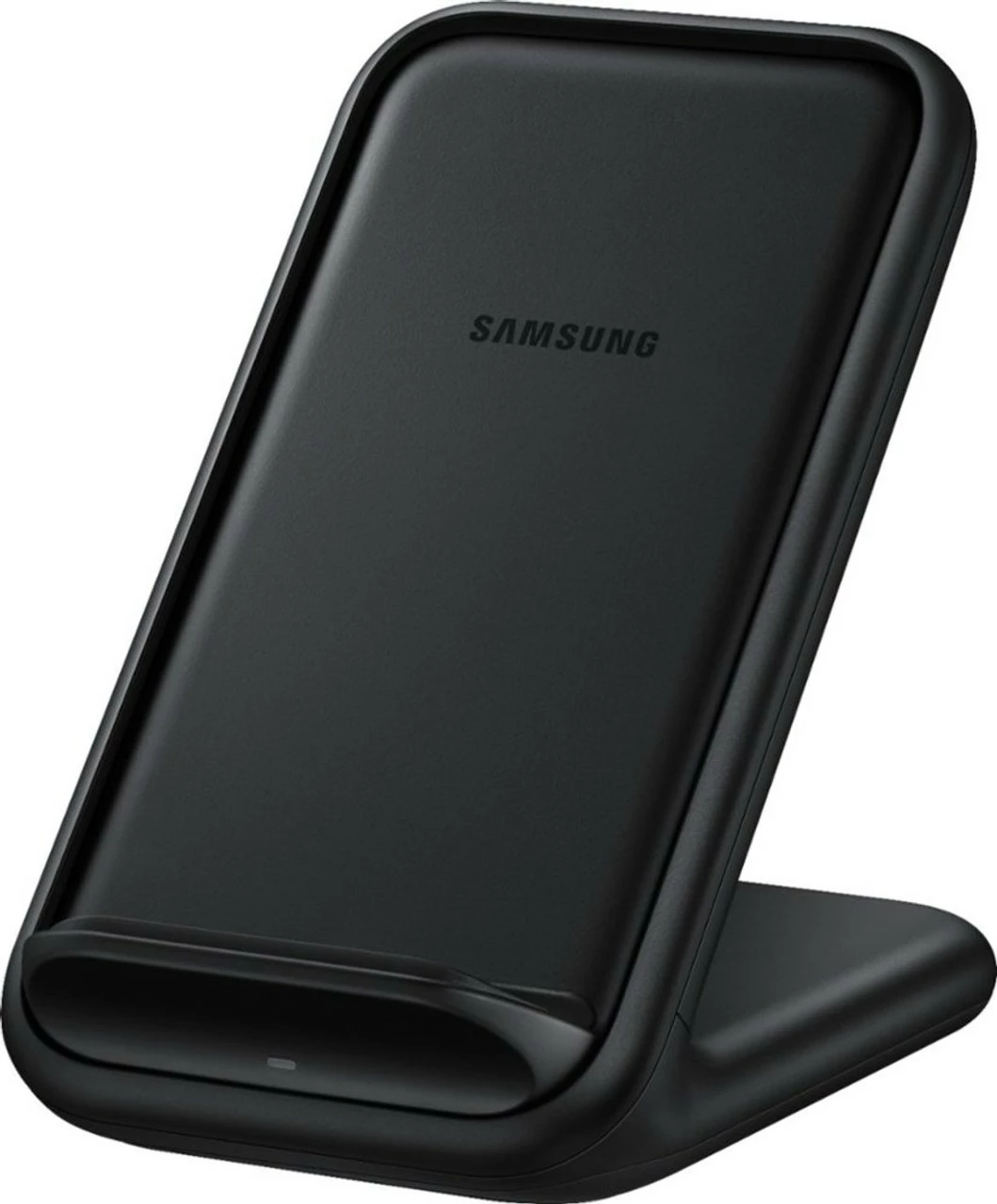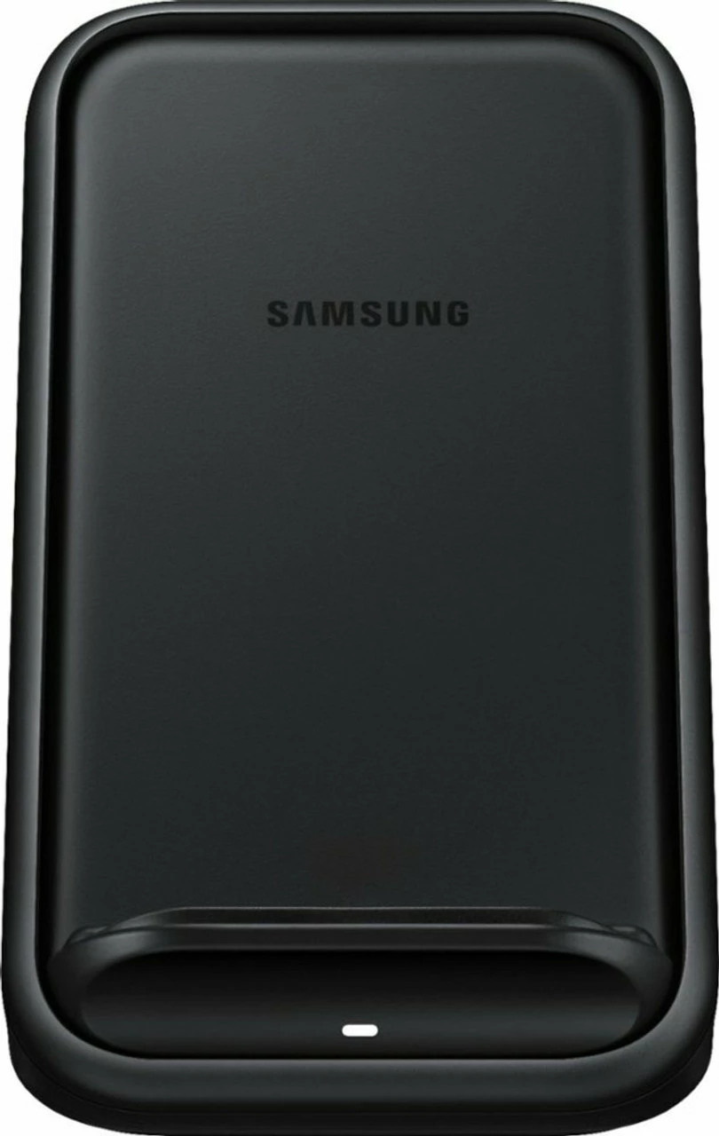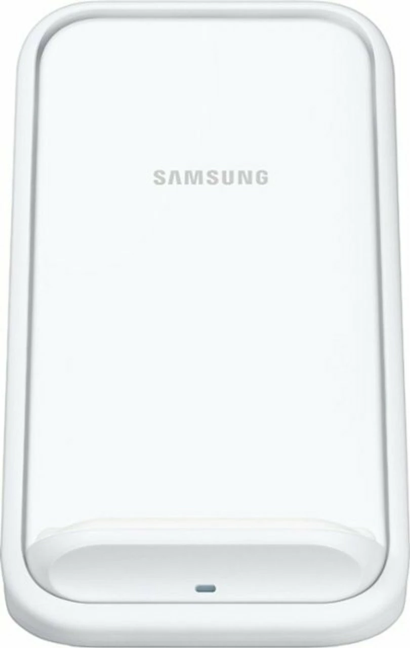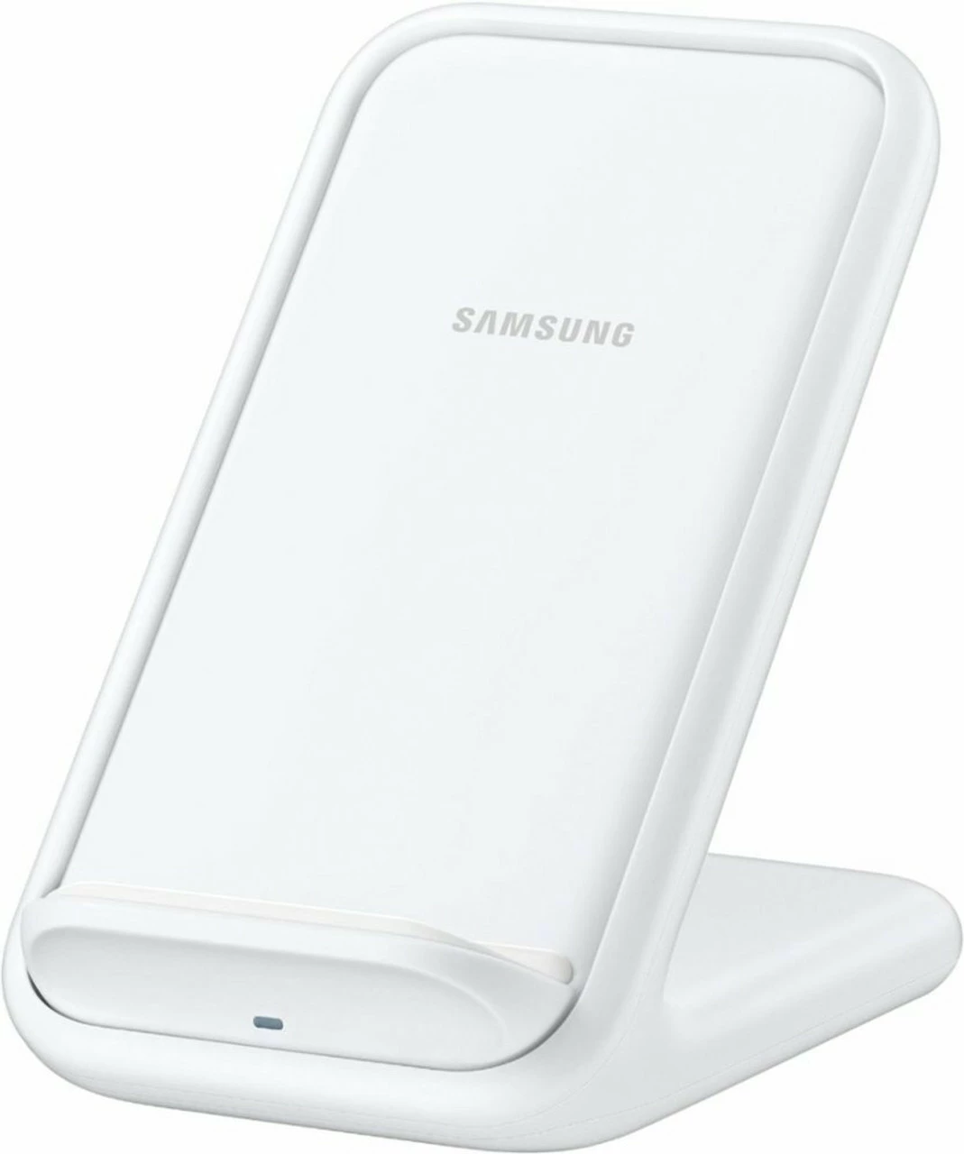 Recharge devices without tangled cables with the white 15W Qi Certified Fast Charge Wireless Charging Stand from Samsung. This Samsung wireless charging stand works with Qi-enabled devices and uses the Fast Charge 2.0 technology to power compatible Android and iOS devices quickly. Its simple design offers easy plug-and-play installation, so you can power your device in portrait or landscape mode. In addition, the built-in LED indicator lets you know if your device is properly aligned and fully charged.