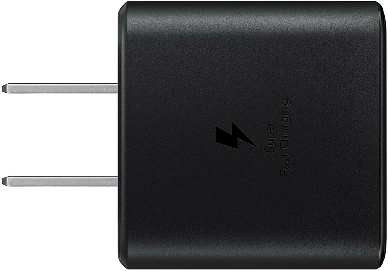This Samsung wall charger with 45 Watt Super Fast Charge capability uses Power Delivery (PD) to provide the most efficient charge possible. Any PD device, including Galaxy Note10+, can charge at up to 45W. Other USB-C devices rates will vary. Plug into any standard wall outlet via the include AC adapter. The Super Fast charger delivers up to 3 Amp to give your phone power at a much faster rate than your standard 1A or 700mA charger