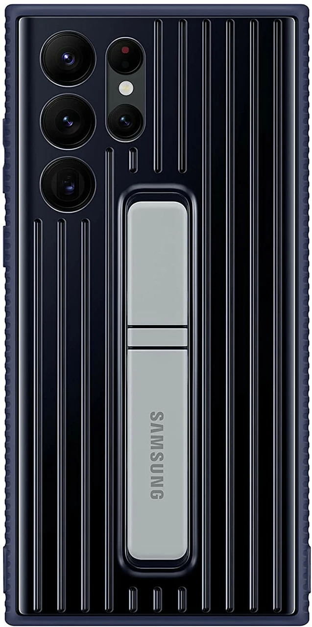 Drop-tested to military-grade standards, the Samsung Galaxy S22/22+/S22 Ultra protective standing cover helps keep your phone safe from damage and drops. Go about your daily routine and worry less about your phone. This case cradles your phone without blocking the immersive view of the Infinity-O Display, and has two kickstands in the back of your case to hold it up. Take your pick of two comfortable viewing angles: 45 or 60 degrees. This case helps protects your phone, and protects itself, too; The kickstands on the back are detachable, snapping off in case your phone falls to prevent them from breaking completely *Tested to MIL-STD-810G Transit Drop standards, for drops from a height of 1.5 meters to a steel surface, in temperatures between 15ºC to 35ºC with 0–80% relative humidity. Standard is according to accredited test results, performance may vary depending on actual usage conditions and other factors. **It is recommended to remove the cover from Galaxy S22+ before using Wireless PowerShare. ***5G performance may be impacted.