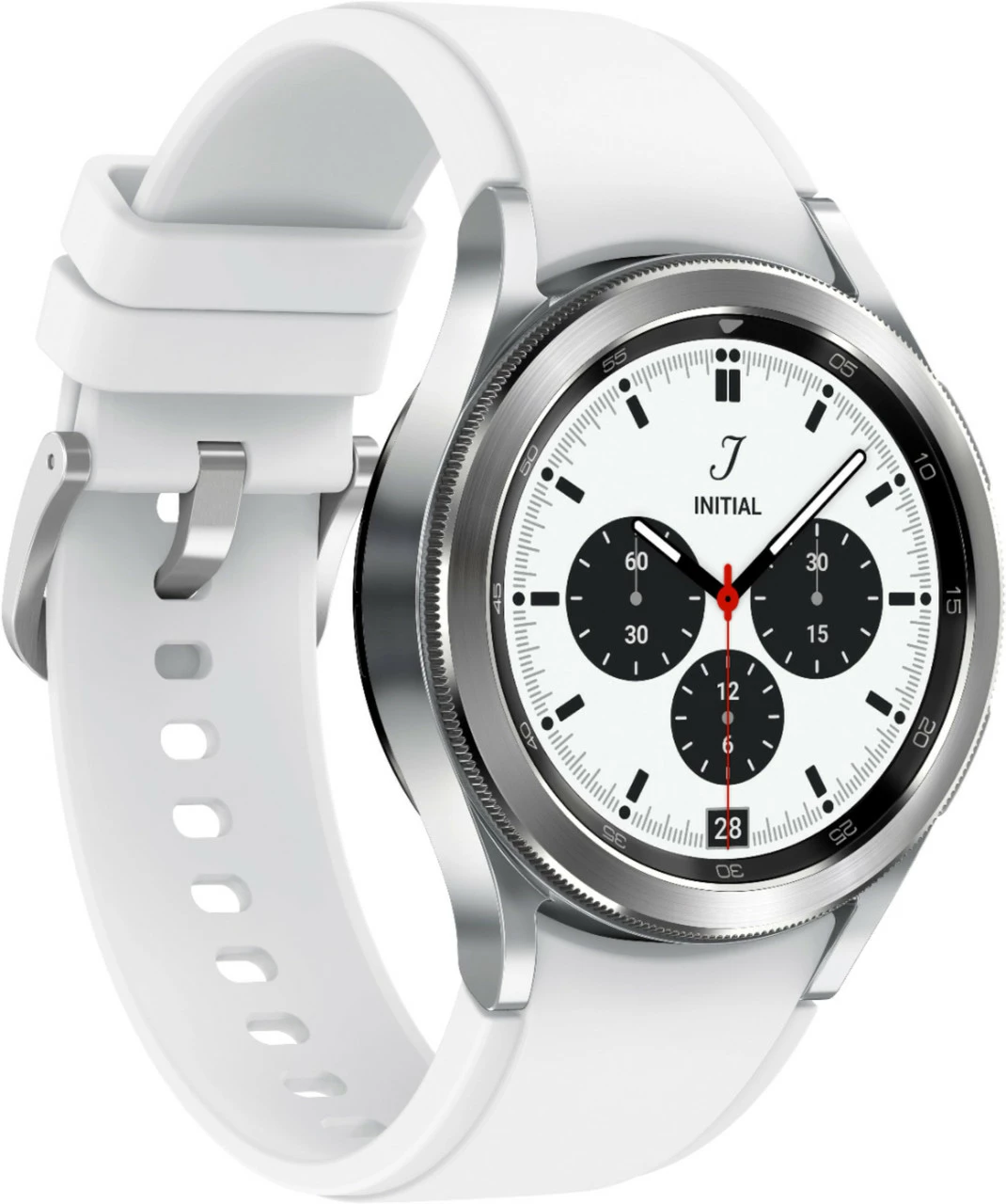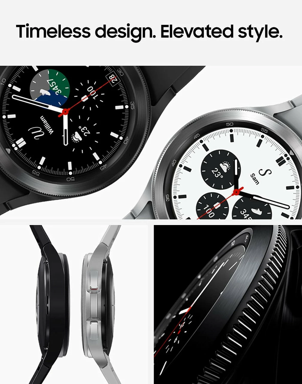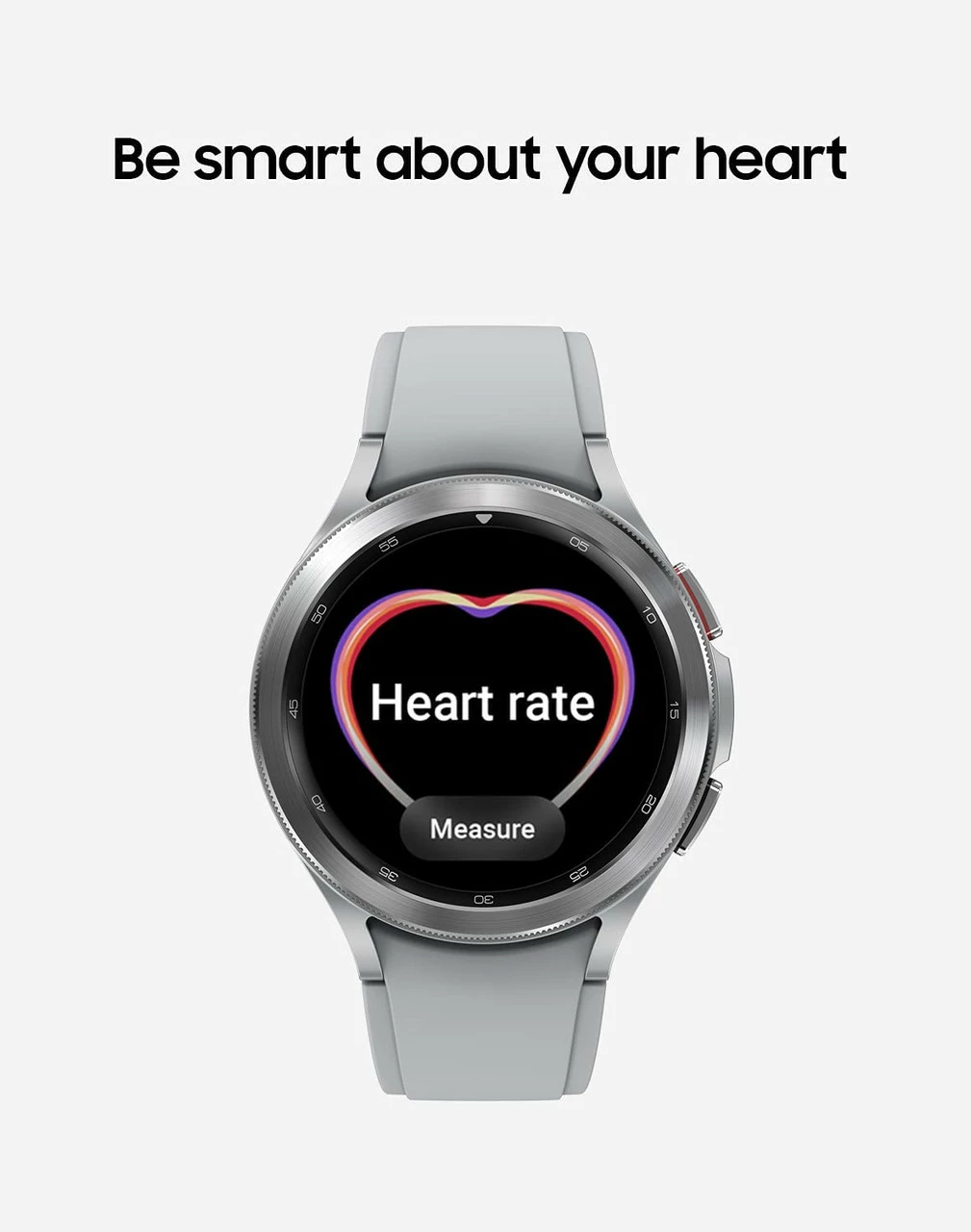 Your style. Your health. Look good and feel great with your smart, new companion, Samsung Galaxy Watch4 Classic. Make a stylish statement with an iconic silhouette and stainless-steel casing, while your watch keeps you in tune with your health and pushes you to go further. Make the most of every run with advanced coaching and oxygen-level monitoring¹ that help you exercise smarter while increasing endurance. Leave your phone behind while staying connected — call, text and stream music,all from your wrist with LTE connectivity. The Samsung Galaxy Watch4 Smartwatch is health evolved, one accurate VO2 max reading requires running outdoors for at least 20 minutes with GPS on; consult user manual before use. The VO2 max software functions are not intended for use in the diagnosis of disease or other conditions, or in the cure, mitigation, treatment or prevention of disease. This Samsung Galaxy Watch4 Classic is available in silver or black.