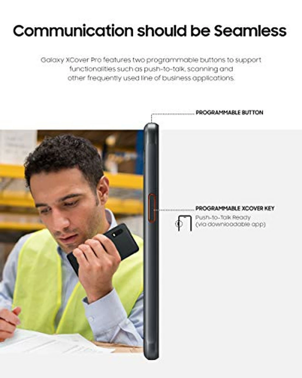 Galaxy XCover Pro features two programmable buttons to support functionalities such as push-to-talk, scanning and other frequently used line of business applications.