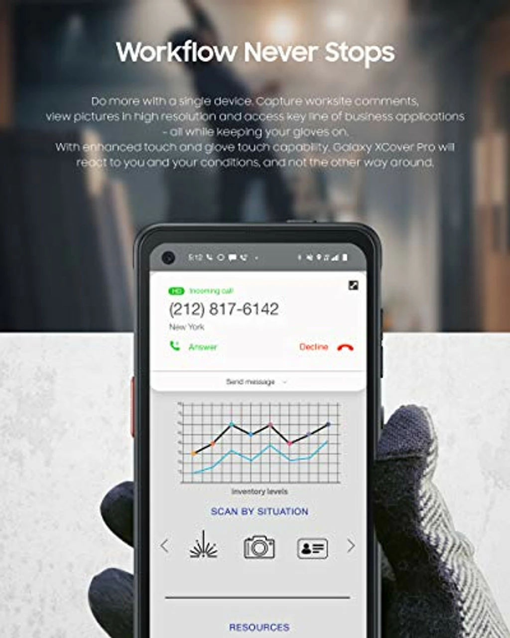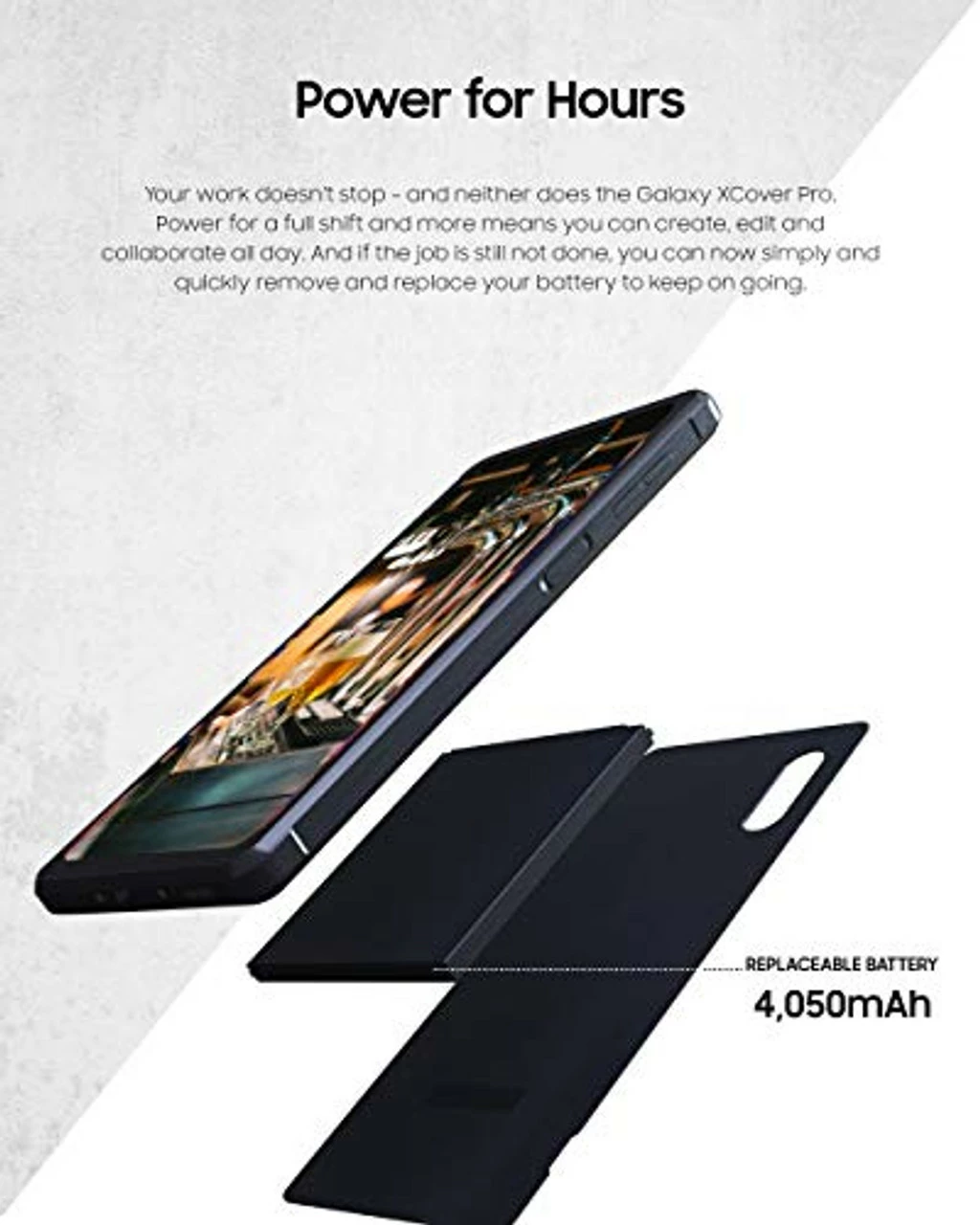 Power for Hours: Your work does not stop – and neither does the Galaxy XCover Pro with a replaceable long lasting/ fast charging battery which keeps your day going without interruption