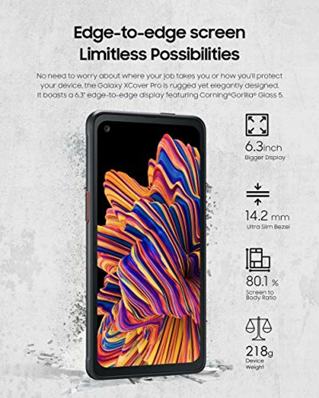 No need to worry about where your job takes you or how you protect your device, the Galaxy XCoverPro is rugged yet elegantly designed. It boasts a 6.3″ edge-to-edge display featuring CorningGorilla Glass 5.
