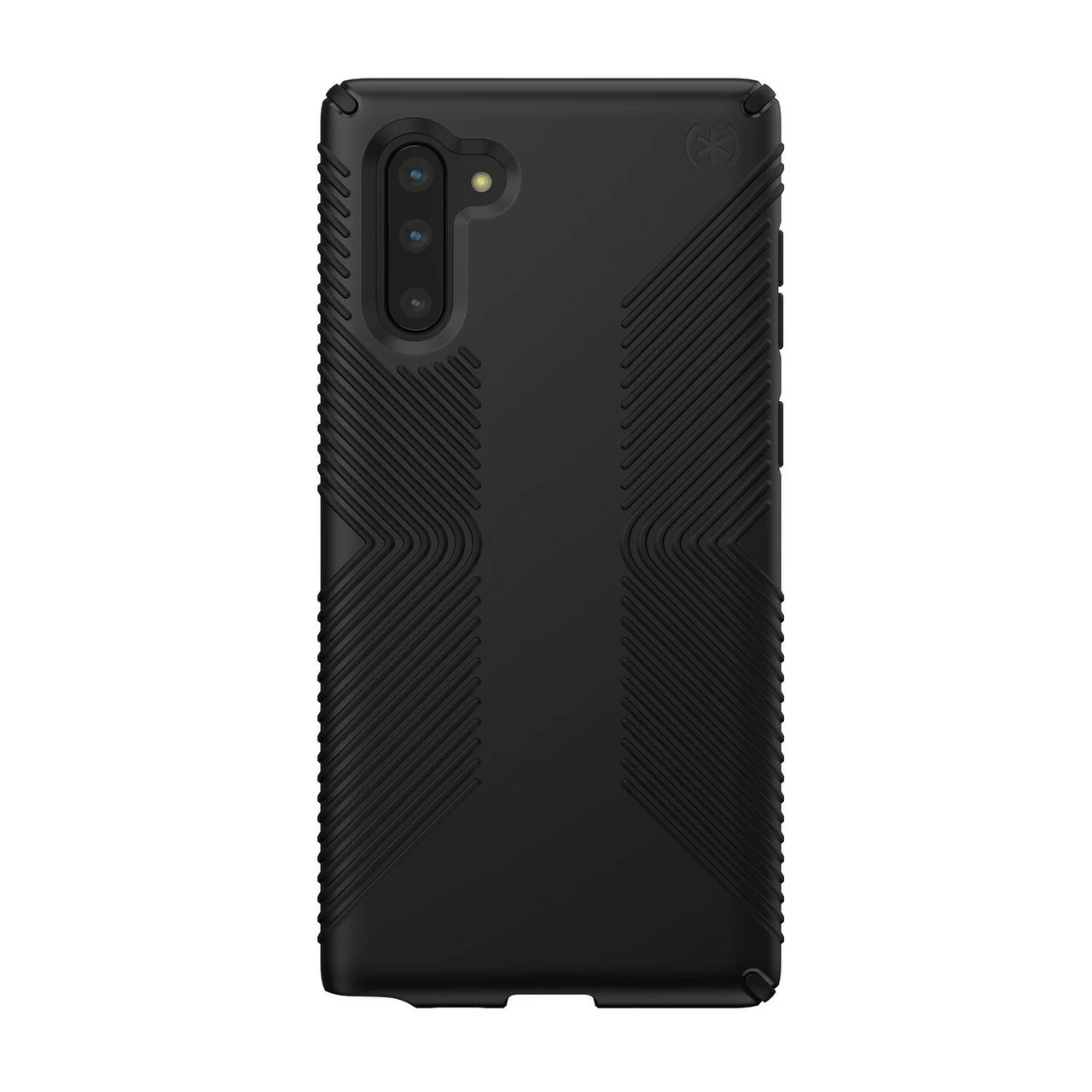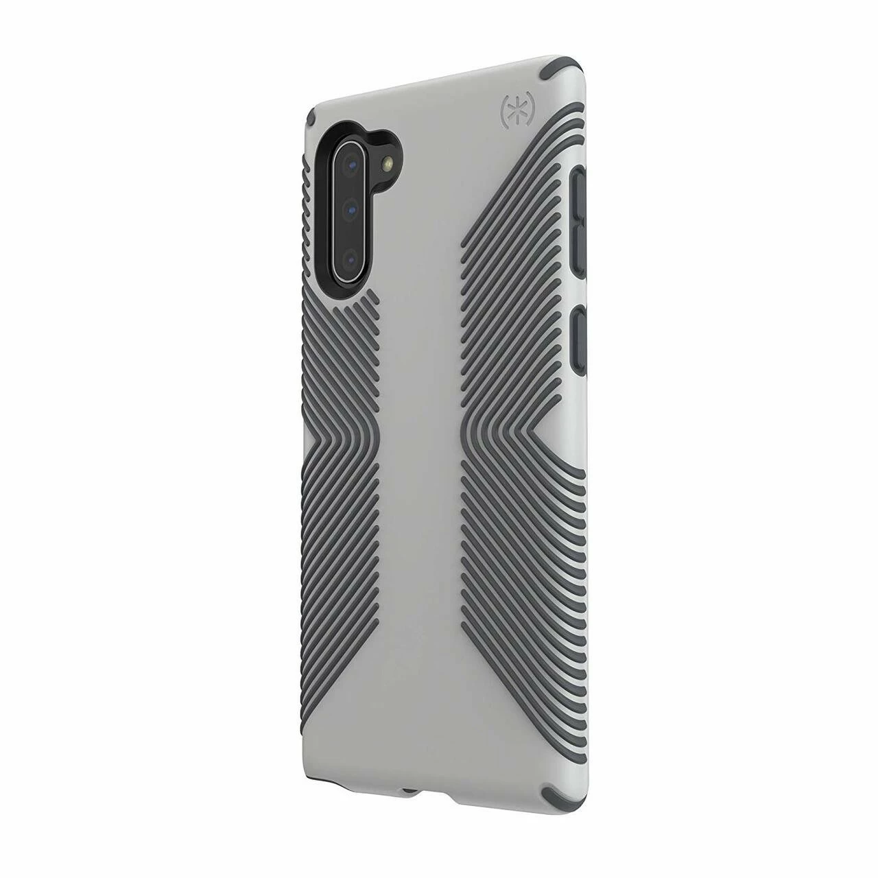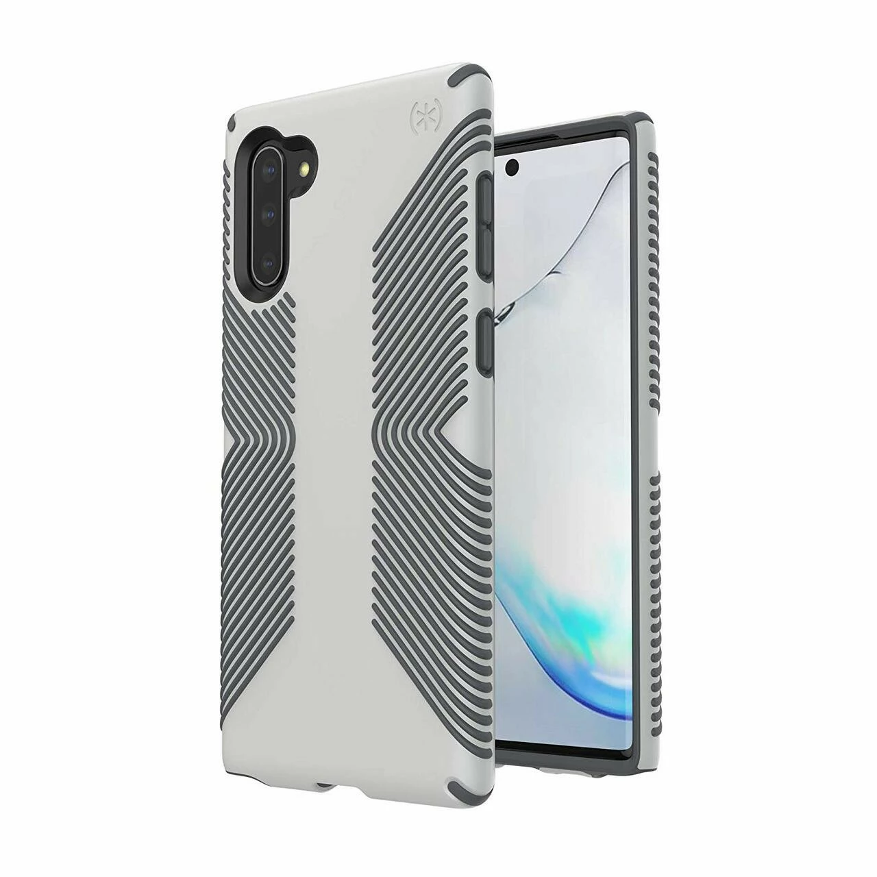 Safeguard your Samsung Galaxy Note 10+/Note10+ 5G with this Speck Presidio case. Its two layers of material provide a barrier of protection during drops of up to 10 feet, and the angled rubber ridges on the back offer a secure grip. This Speck Presidio case has a raised bezel to shield the touch screen from scratches.